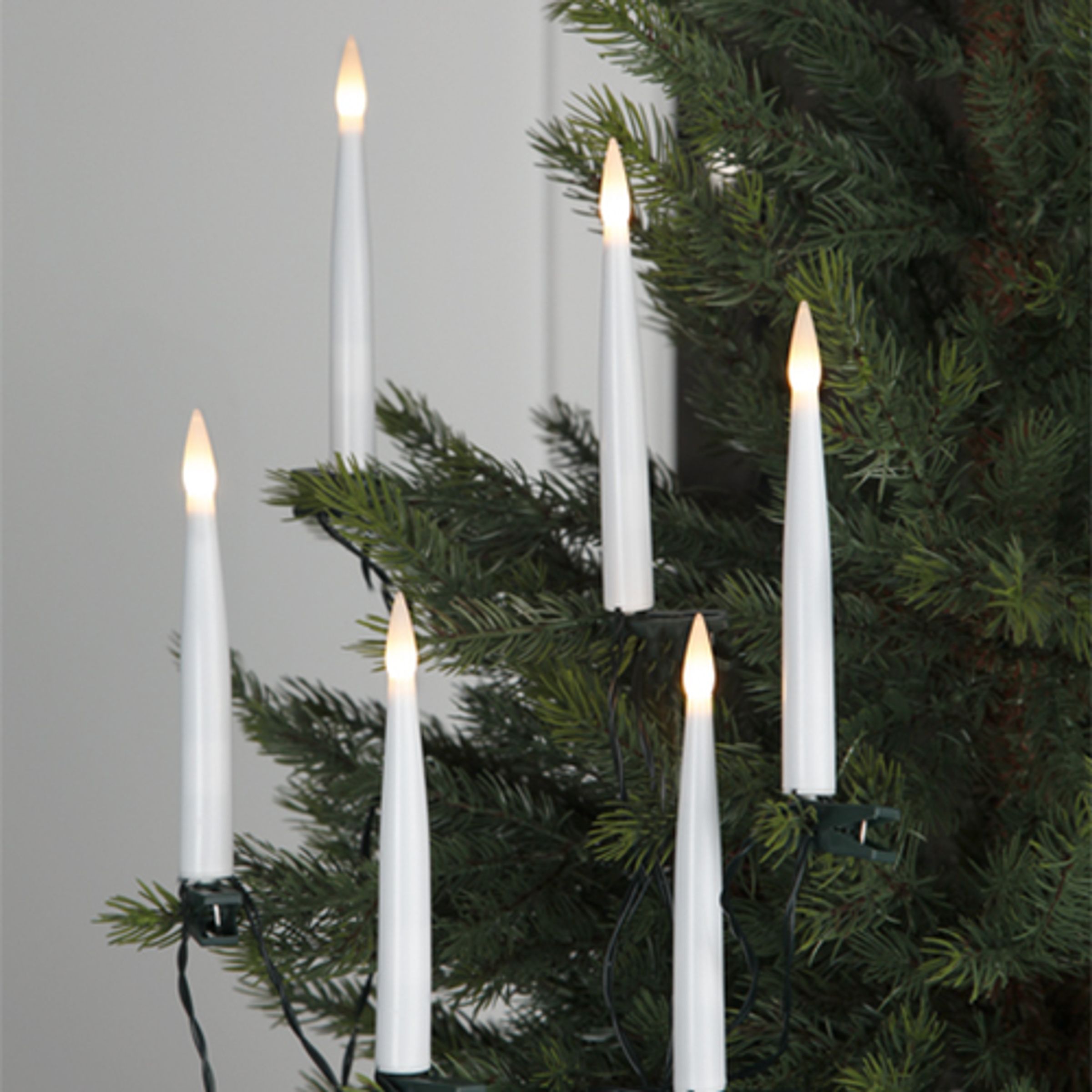 Mysig julgransbelysning som föreställer tunna och långa stearinljus. Medföljer gör totalt 16 stycken LED-ljus som skapar en harmonisk känsla i granen. Fungerar lika bra på en riktig gran som på en plastgran.