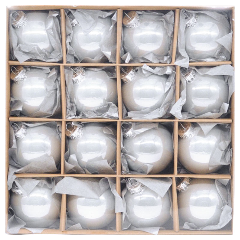 Julgranskulor Glas Vit 16-pack omfattar sexton stycken julgranskulor i blank vit. Kulorna har en diameter på 5 centimeter. Kulorna är tillverkade i glas och säljes i 16-pack.