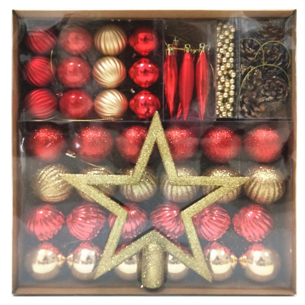 Få till en fantastisk julgransdekoration med detta snygga julgranspynt set i rött och guld! Med dessa stämningshöjande julkulor, kottar, pärlband och julstjärna blir det enkelt att pynta din julgran riktigt proffsigt. Ett utmärkt set för dig som ska pynta granen för första gången eller bara är sugen på lite nytt julgranspynt.