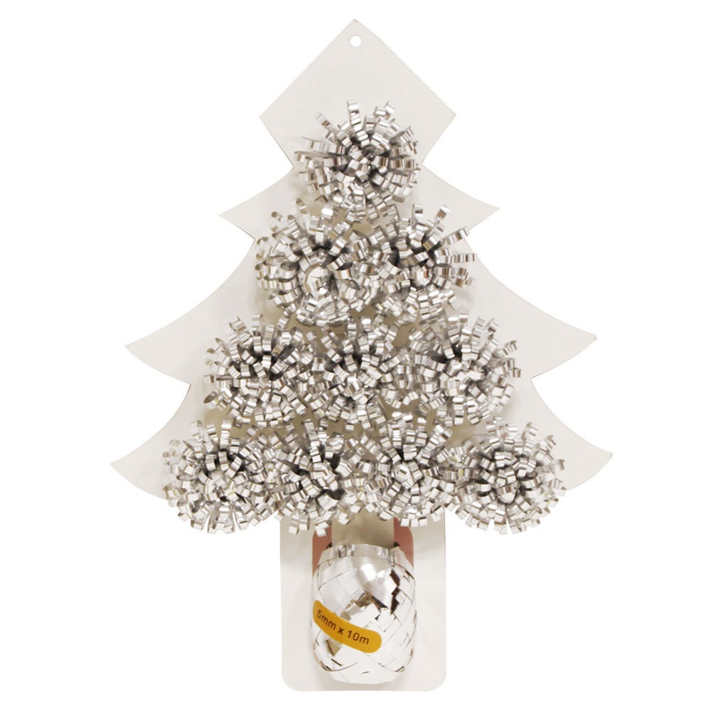 Skapa en riktigt fin julklappsinslagning med detta set julklappssnöre och presentrosetter. Snyggt metallic silvrigt presentsnöre och matchande rosetter som snabbt och enkelt gör dina klappar extra fina.