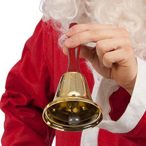 En rejäl julklocka i gyllenefärg med rött långt handtag. Perfekt för speciella tillfällen som kräver det där lilla extra!