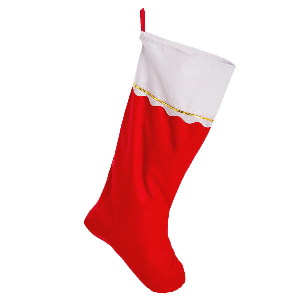 Julstrumpa 90 cm omfattar en superstor julstrumpa i filtliknande polyester. Julstrumpan är röd med vit kant och har ett guldigt streck. Julklappsstrumpan kommer med praktisk upphängningsögla och är ca 90 cm lång och 28 cm bred.