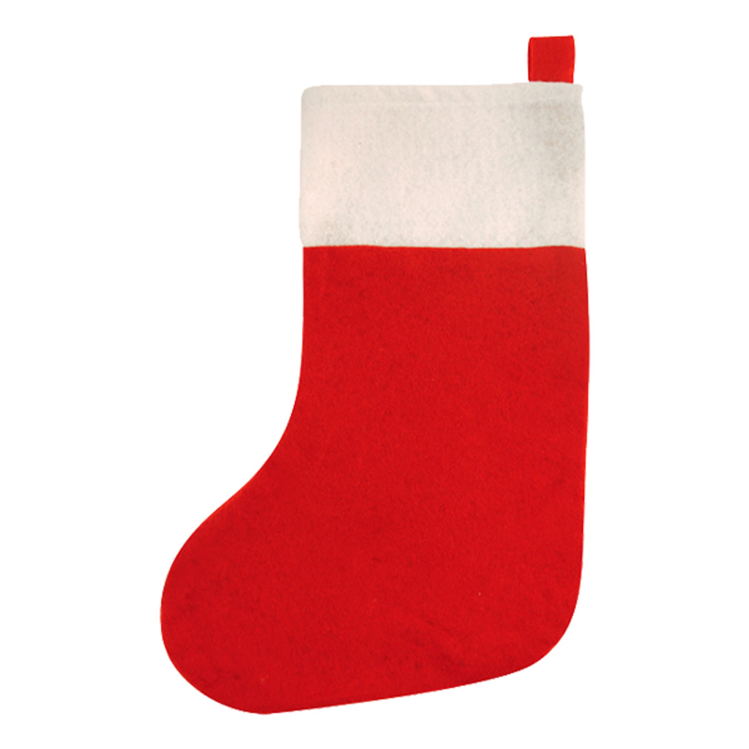 Julstrumpa Budget är en enkel julstrumpa i filtliknande material. Strumpan är klassiskt röd och vit och har en röd hängare för enkel upphängning.