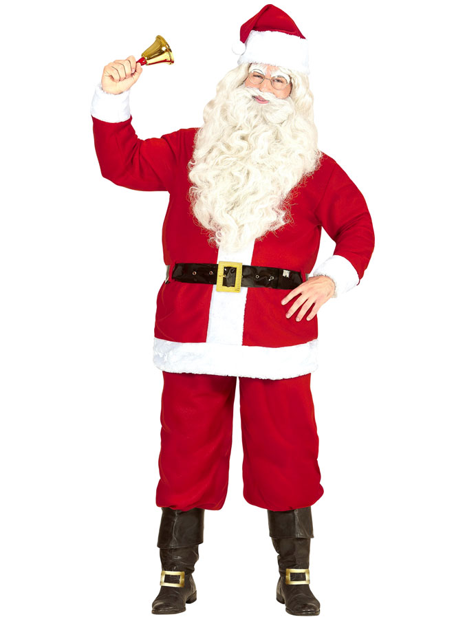 – Dräkt med jacka, byxor, bälte och tomteluva.