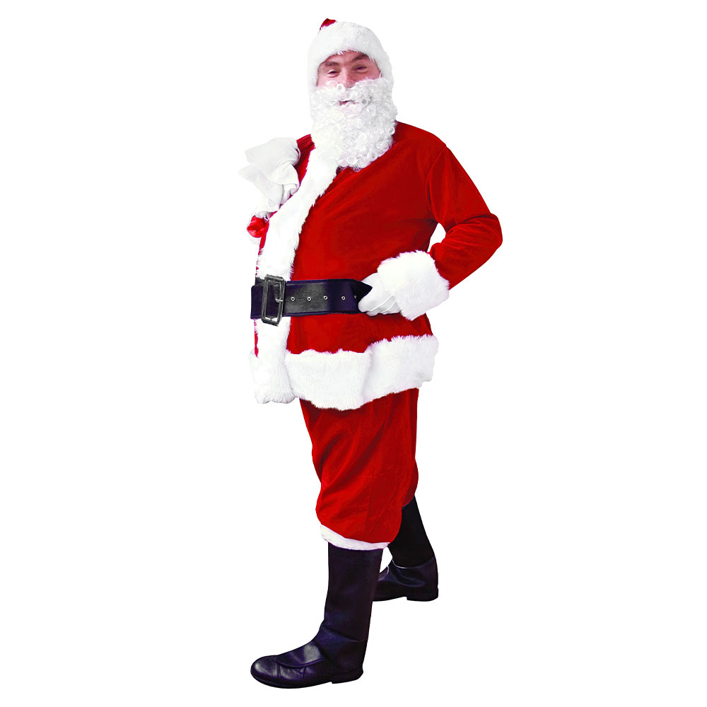 Jultomtedräkt med Skägg omfattar en klassisk tomtedräkt med jacka, byxor, tomteluva och skägg. Medföljer även ett par vita handskar, ett svart bälte och svarta skoöverdrag. Dräkten är tillverkad av polyester och passar vuxna.