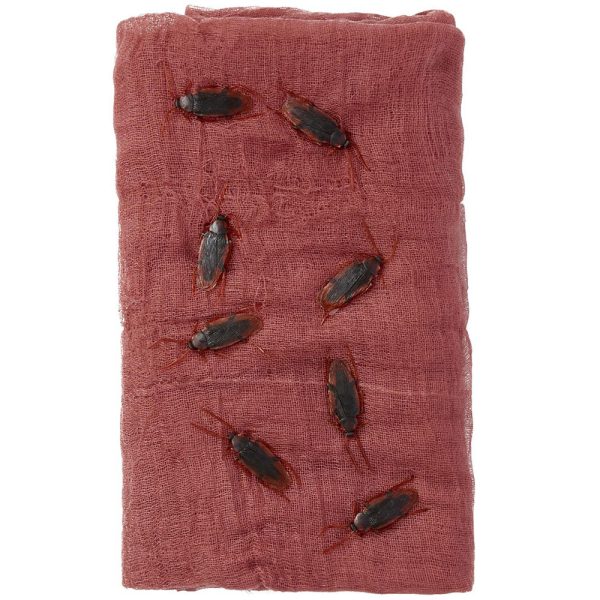 Dra blicken till din Halloweenfest med denna skrämmande Kackerlackor på Tyg Dekoration. Tyget har en mystisk lila nyans som slår samman med mörkret och ger känslan av en riktig skräckfest. Otäckt realistiska plast kackerlackor kryper över tyget, och adderar en skrämmande detalj som kommer att göra ditt Halloween firande minnesvärt. Dekorera din festlokal med denna udda dekoration för den ultimata Halloween atmosfären.