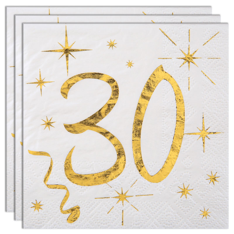 Vill du få till en fin dukning till 30-års kalas eller fest så är dessa Sparkle 30-års servetter ett utmärkt val för dig! Fina servetter för dig som fyller 30 år och önskar en festlig födelsedag med en tjusig dukning i nyanser av vit och guld. Dessa kaffeservetter är med andra ord utmärkta servetter för dig som drömmer om en riktigt fin 30-års dukning som matchar din fest.