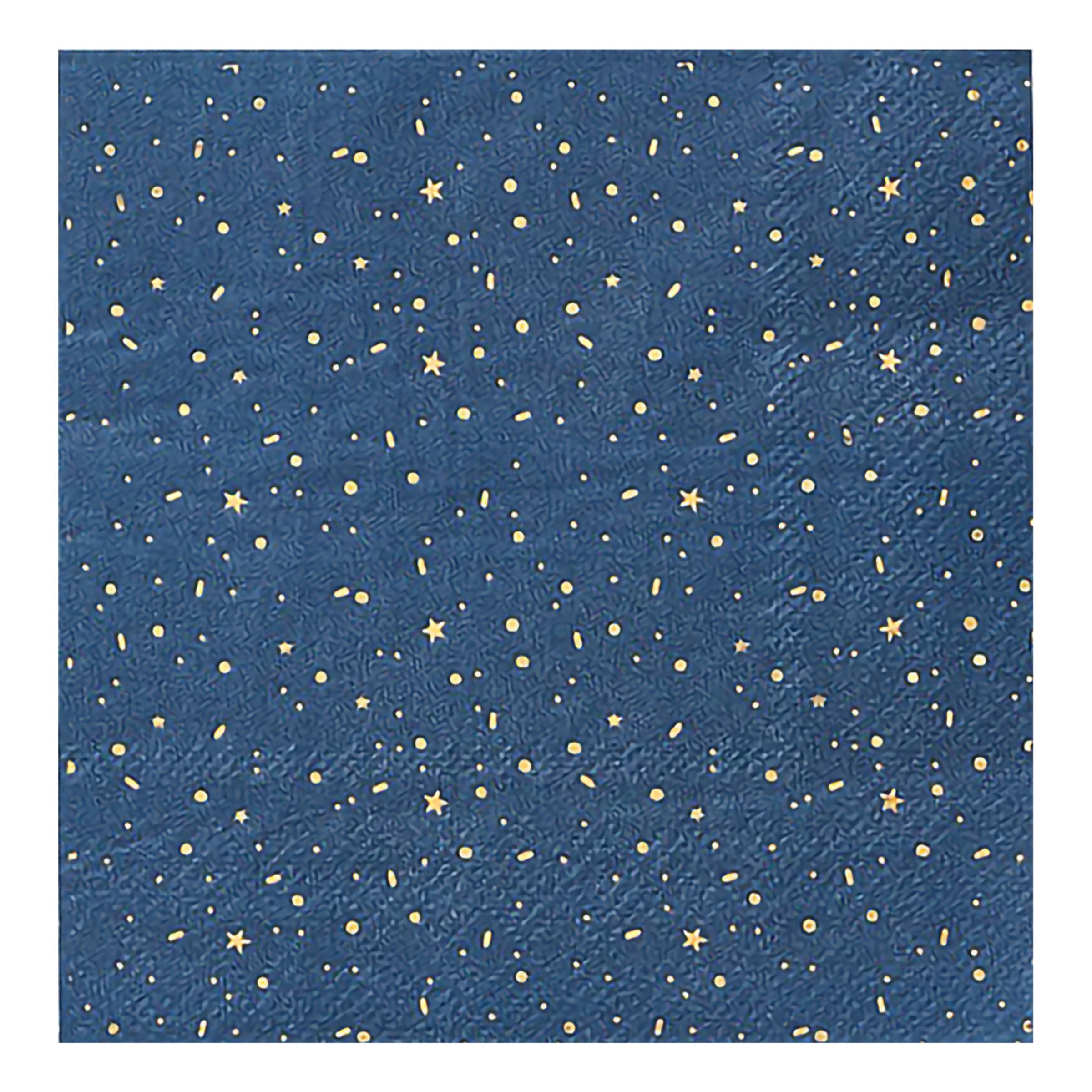 Kaffeservetter Mörkblå Guldstjärnor innehåller 20 stycken mörkblåa servetter som samtliga pryds av massvis med gyllene stjärnor. Stilrent och magiskt på samma gång!