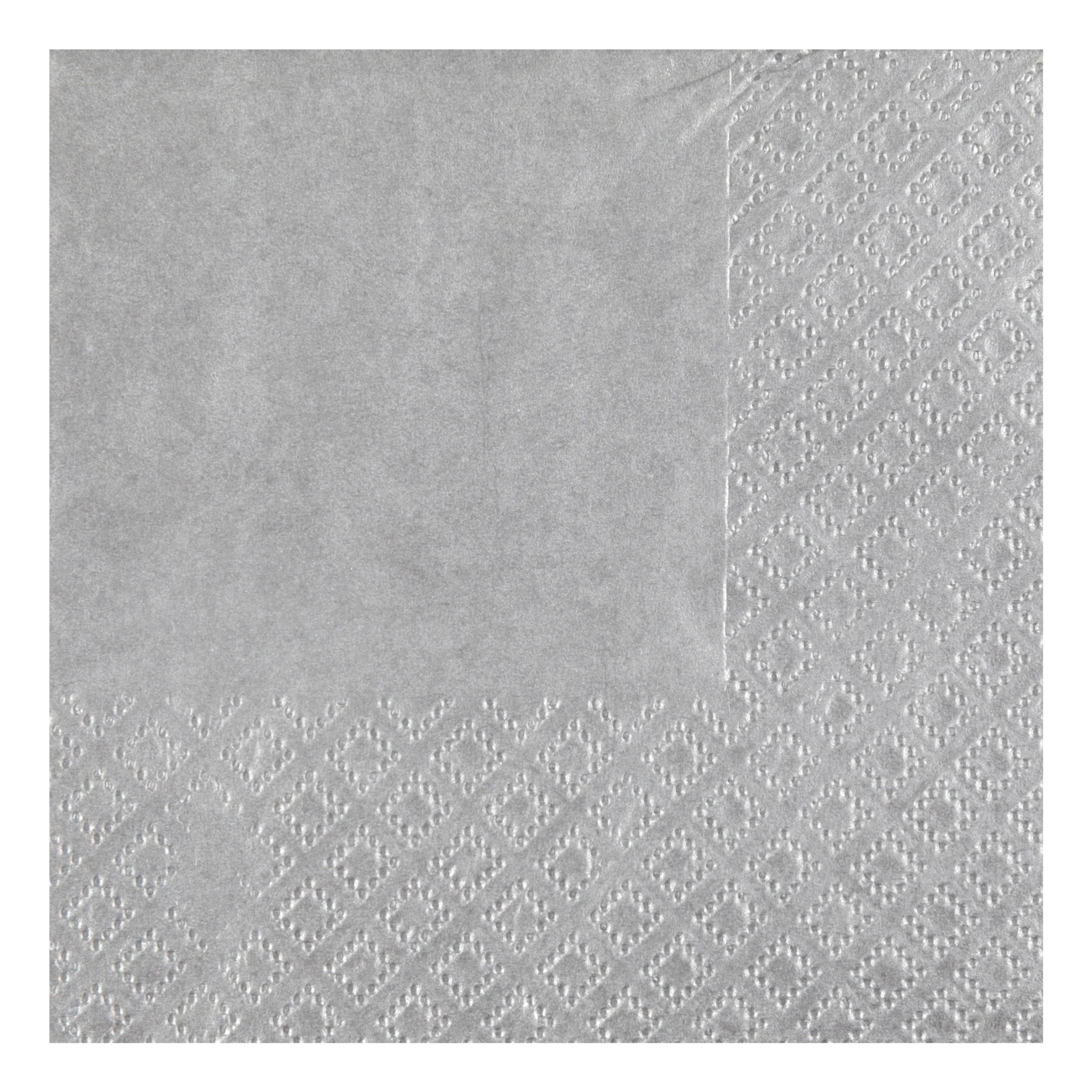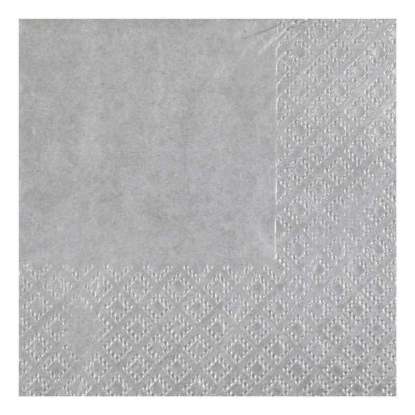 Kaffeservetter Silver är en cocktailservett i en silvrig färg som gör sig fin till alla dukningar! Servetterna består av 3 lager tunt papper med god uppsugningsförmåga och mäter 21×20 cm när de är fullt utvikta. Perfekt till bröllopet eller nyårsfesten!