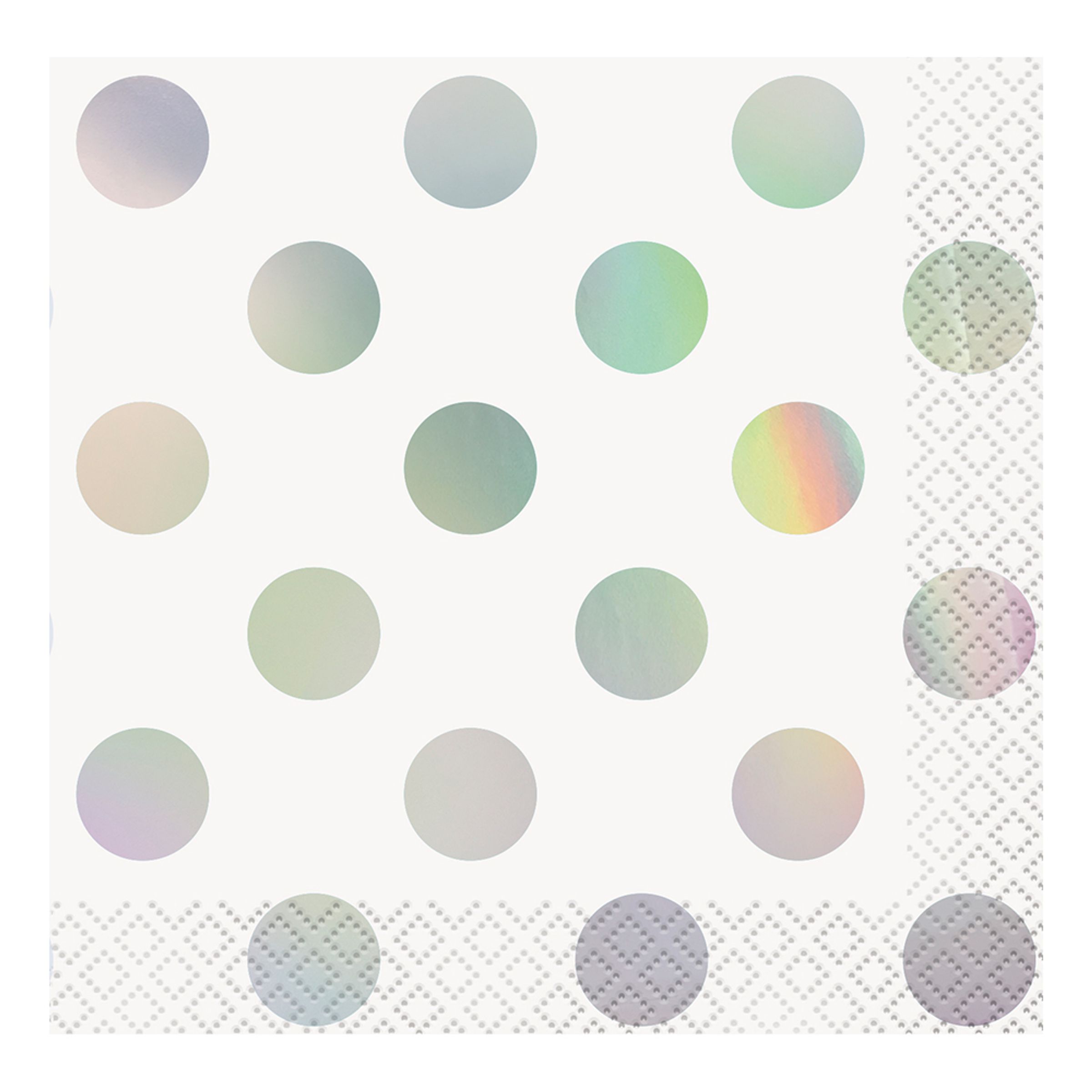 Kaffeservetter Silver Metallic Polka Dot är ett 16-pack med vita pappersservetter. Servetterna har glansiga silverprickar som bidrar ett modernt intryck. De kan exempelvis användas på en fest eller en fika.