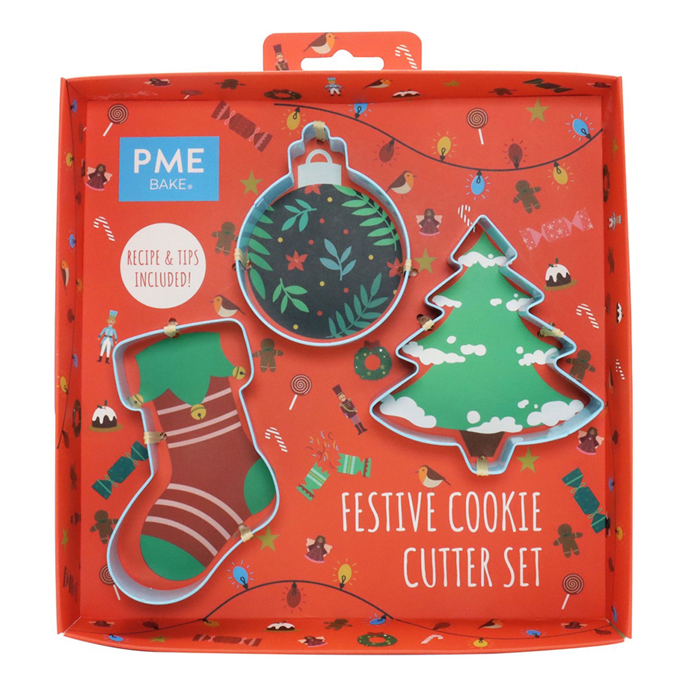 Kakformar Julmotiv Kit inkluderar tre stycken kakformar i motiven julgran, julkula och julstrumpa. Formarna kommer i en ljusblå färg och är ett måste för alla bakentusiaster.