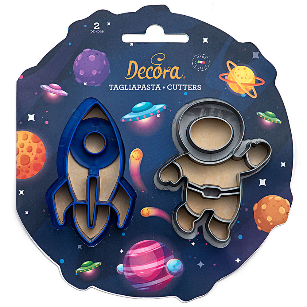 Kakformar Rymdraket och Astronaut innehåller 2 stycken kakformar som föreställer en astronaut och en rymdraket. Tillverkade av plast.