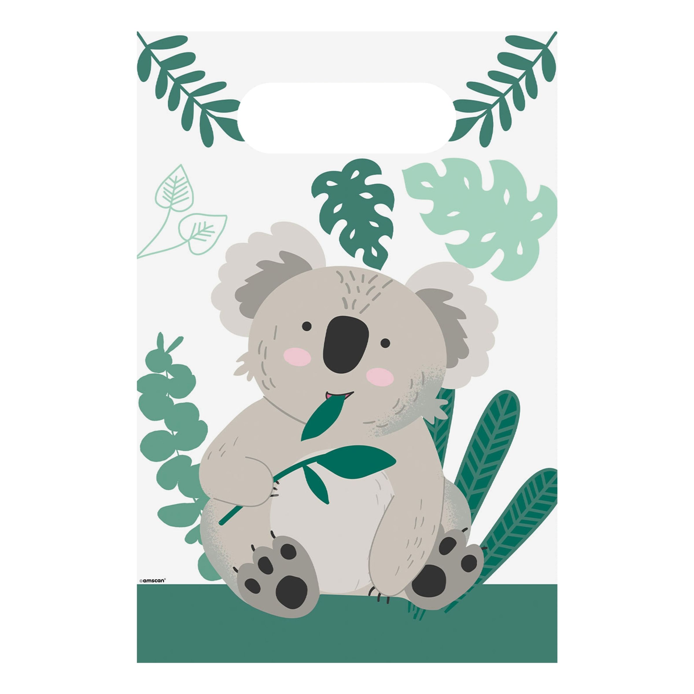 Kalaspåsar Djungel Koala innehåller 8 stycken häftiga påsar i papper som samtliga mäter 15.8 x 23.6 cm och pryds av en ätande koala. Perfekta påsar att fylla med diverse smaskigheter och dela ut på kalaset!