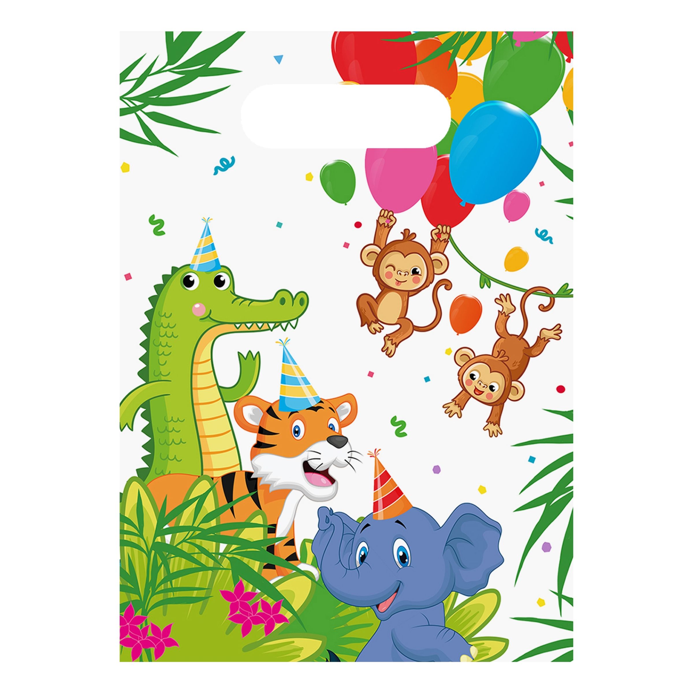 Det är fest i djungeln och alla djur är bjudna! Se till att skapa ett oförglömligt kalas med våra fina kalaspåsar du fyller med godis och delar ut till gästerna!