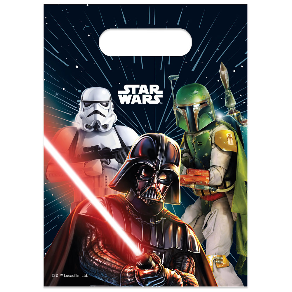 Förbered de små kalasgästerna på en spännande skattjakt i yttre rymden och låt dem ge sig ut på sitt äventyr för att hitta dessa häftiga kalaspåsar! Fyll påsarna med smarrigt godis och kanske en kul liten kalasleksak så är dem klara för Star Wars barnkalas. Snygga Star Wars godispåsar som blir perfekt till en skattjakt, fiskdamm eller att bara dela ut efter fikat. Kort sagt ett superkul Star Wars kalas-tillbehör som blir perfekt till barnkalas i Star Wars tema.