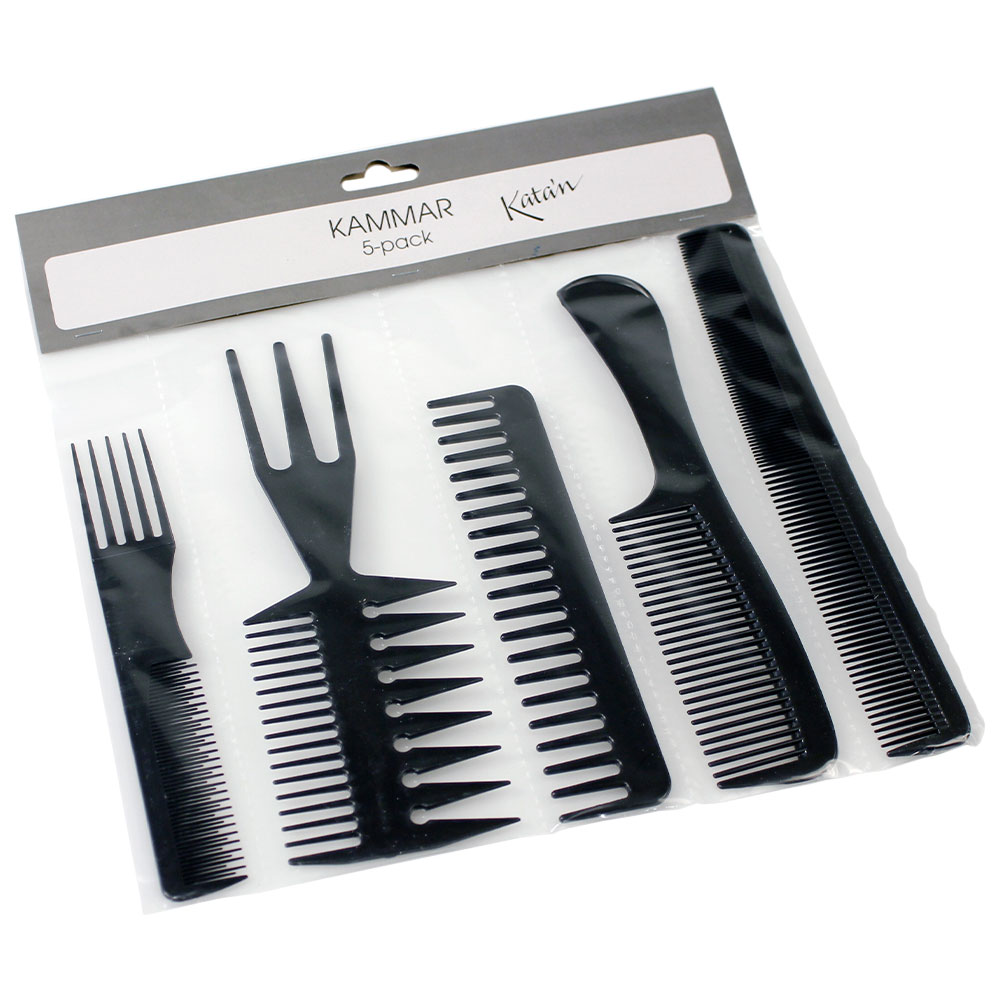 Kammar Kit Svart 5-pack omfattar ett kit med fem olika kammar i svart som är både värme- och slittåliga.