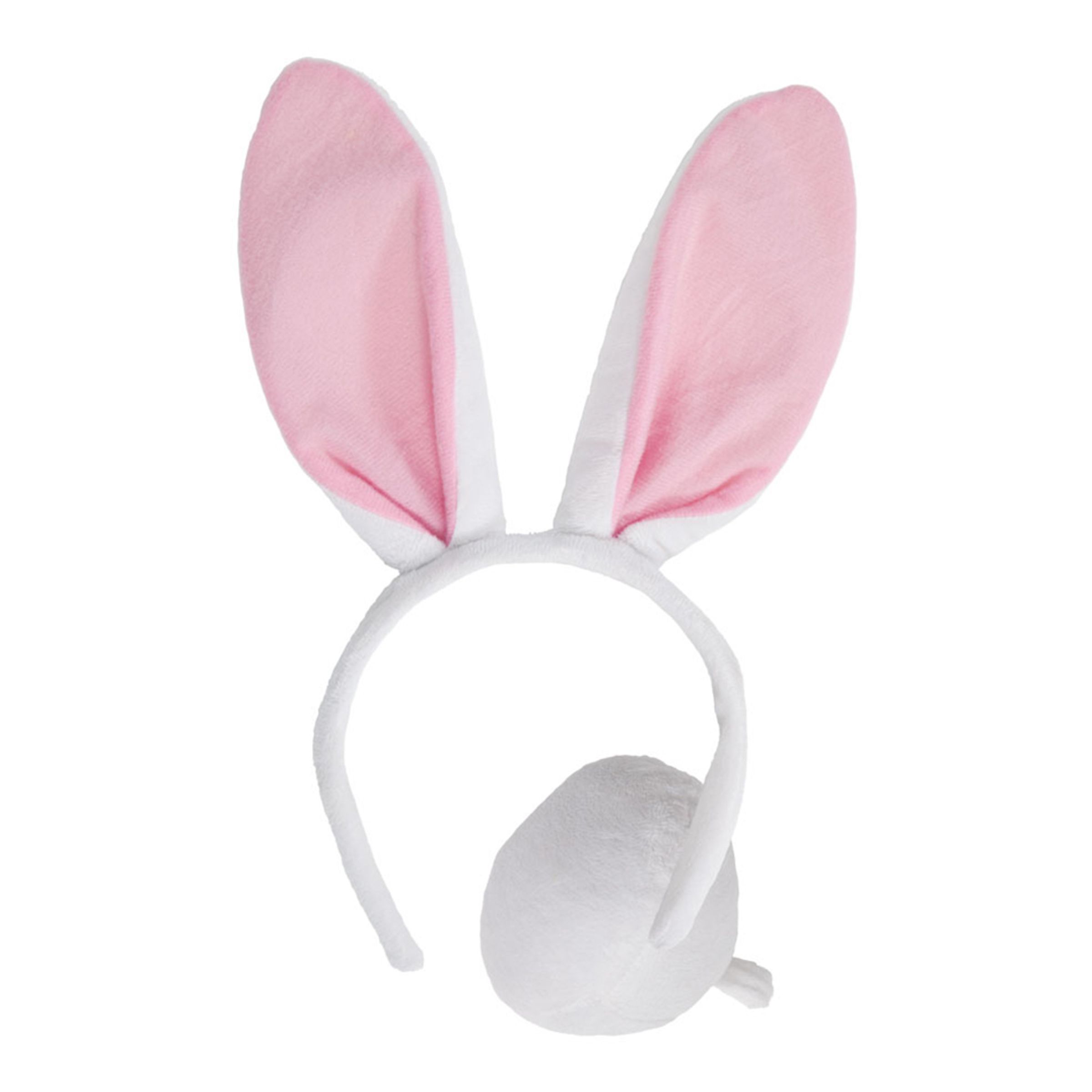 Kanin Med Stora Öron Tillbehörskit Barn inkluderar ett diadem med kaninöron och en liten uppstoppad kaninsvans. Kommer i en storlek som passar barn.