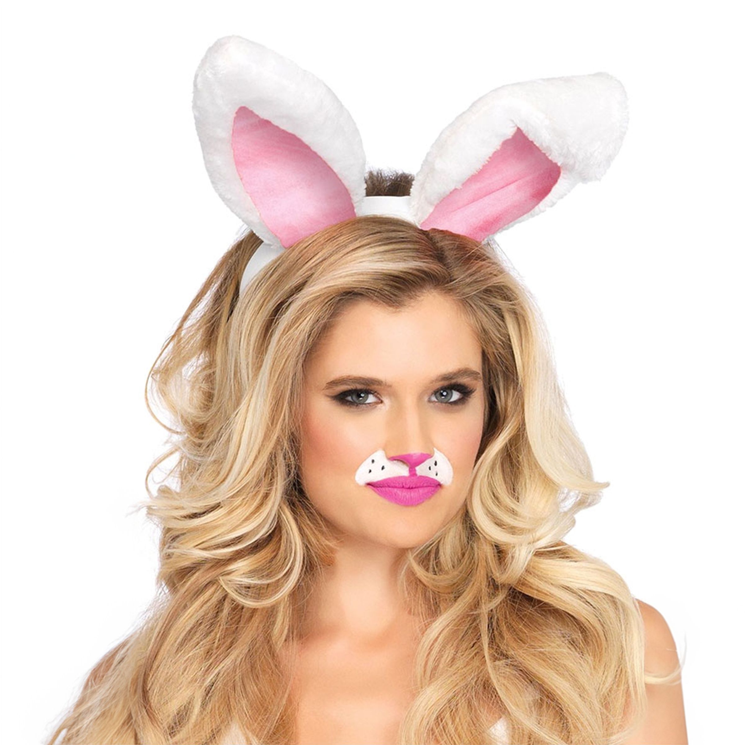 Roliga kaninöron i vit, fluffig och mjuk plysch med rosa insida som gör din kaninklädsel komplett. Hoppa fram på nästa maskerad! Måla gärna en söt liten nos och morrhår med ansiktsfärg till kaninöronen. Öronen är lätta att använda eftersom de sitter fast på ett diadem. Bara att sätta på huvudet och sedan är du klar.