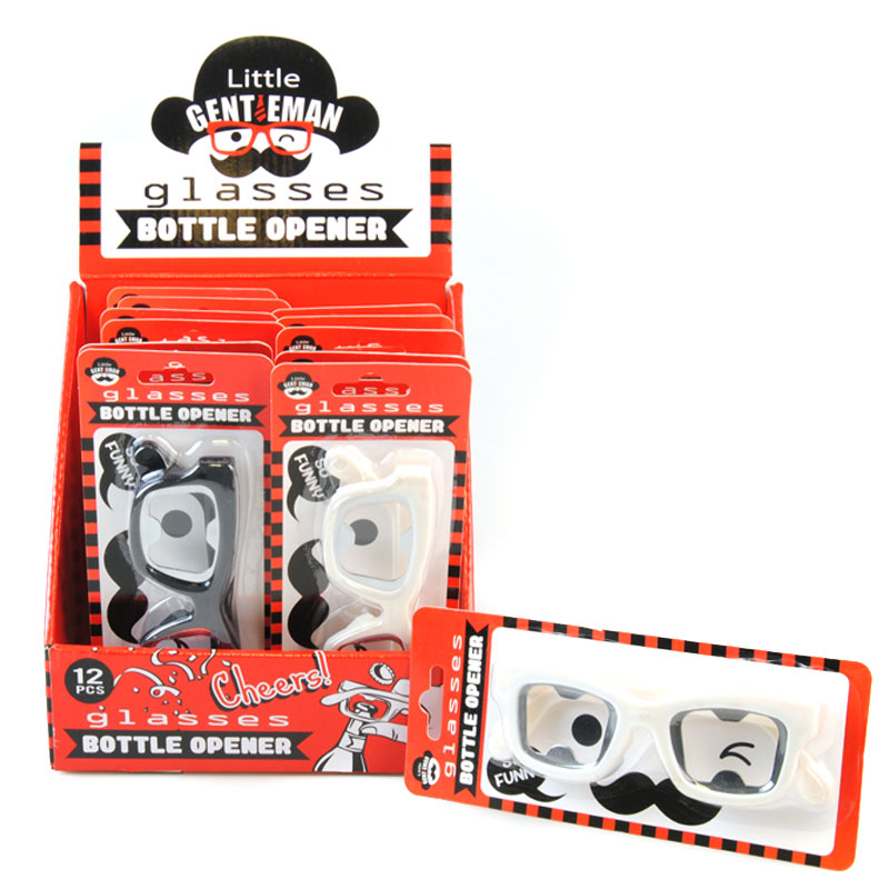 Kapsylöppnare Glasögon omfattar en kapsylöppnare i form av ett par glasögon. Flasköppnaren kommer i färgerna svart och vit.