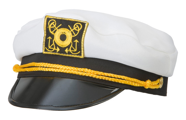 Kaptenshatt omfattar en vit kaptenshatt med svart skärm samt guldigt tygmärke. Hatten är tillverkad av polyester och passar vuxna.