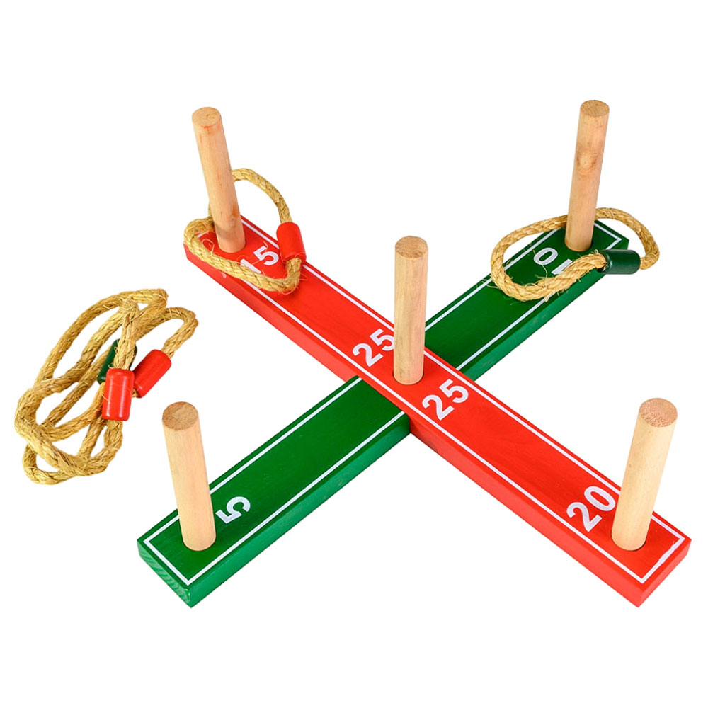 Ut och aktivera dig med ring toss game som är ett riktigt roligt utomhusspel där du ska sikta, kasta ring och samla poäng. Detta ringkastning spel är lika skojigt ute i din trädgård som på picknick eller på stranden, det är även ett perfekt spel att ha med i en 5-kamp för barn och vuxna.