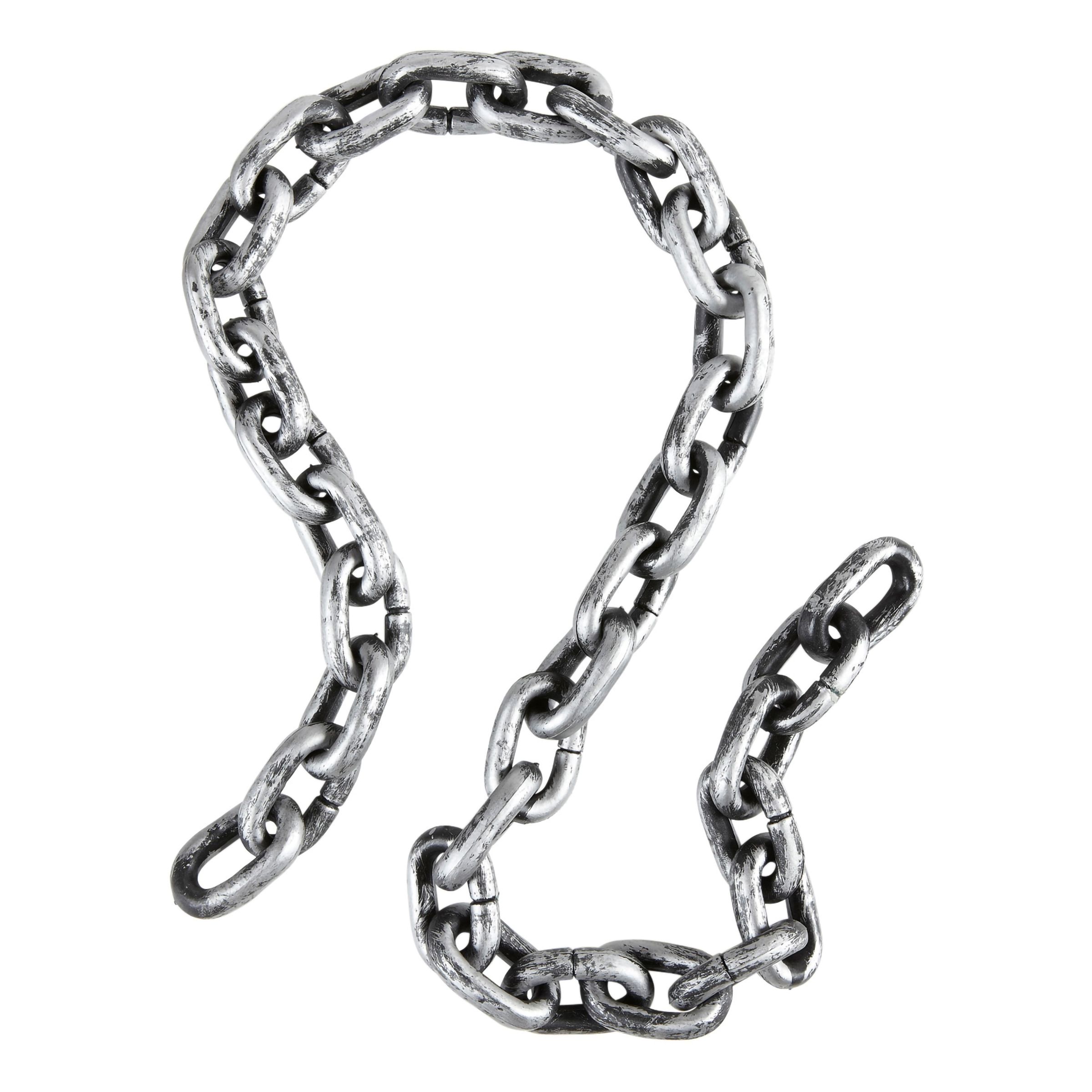 Kedja i Plast är en verklighetstrogen kedja i slitet, silverfärgat utförande som är 1,5 meter lång. Använd som tillbehör till din maskeraddräkt eller som häftig halloweendekoration utanför ytterdörren för en riktig haunted house-feeling!