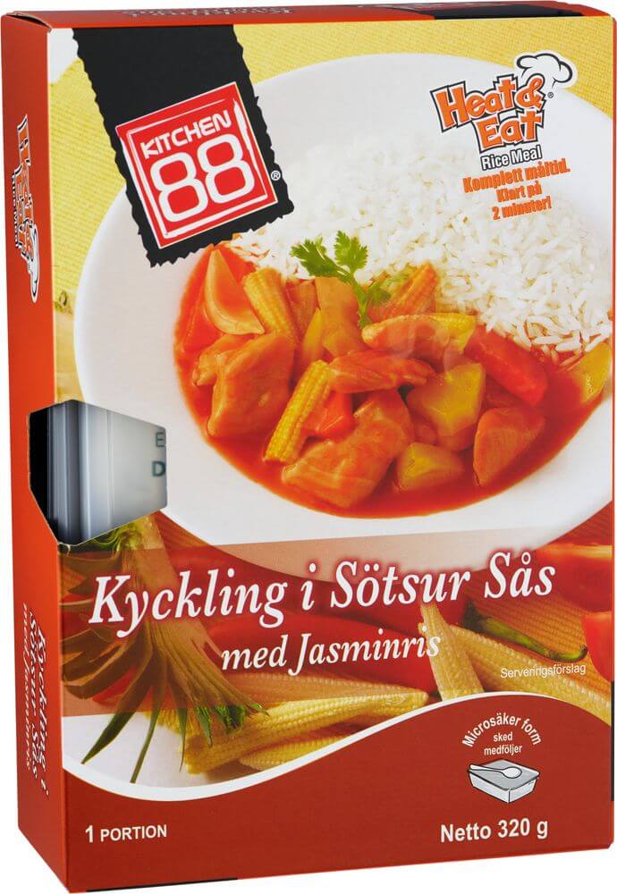 Kitchen 88 färdiga maträtt Thailändsk sötsur sås med kyckling och Jasminris.