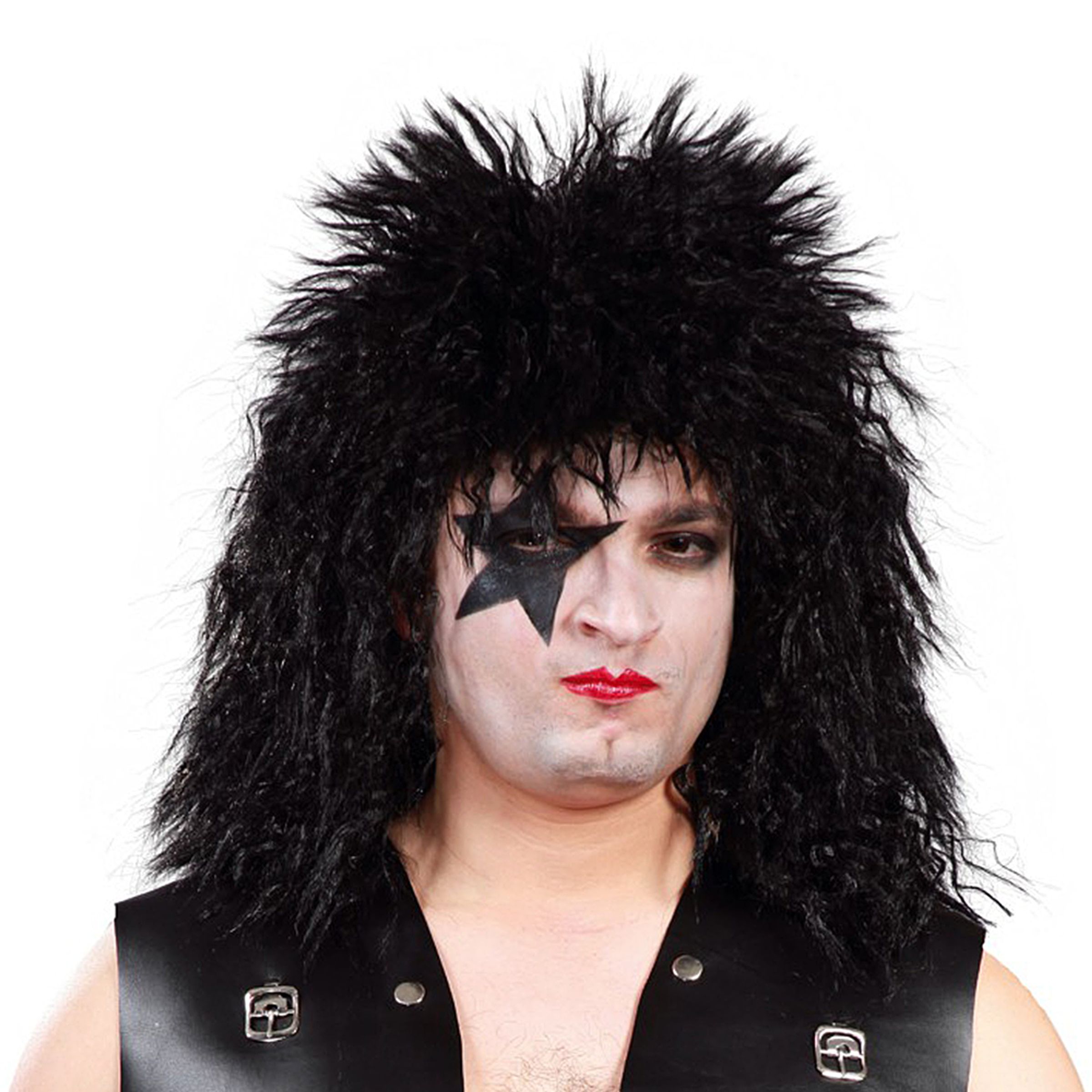 Kizz Svart Peruk består av en svartfärgad peruk med långt hår i en sån där klassisk, busig och fluffig hårdrocksfrisyr.