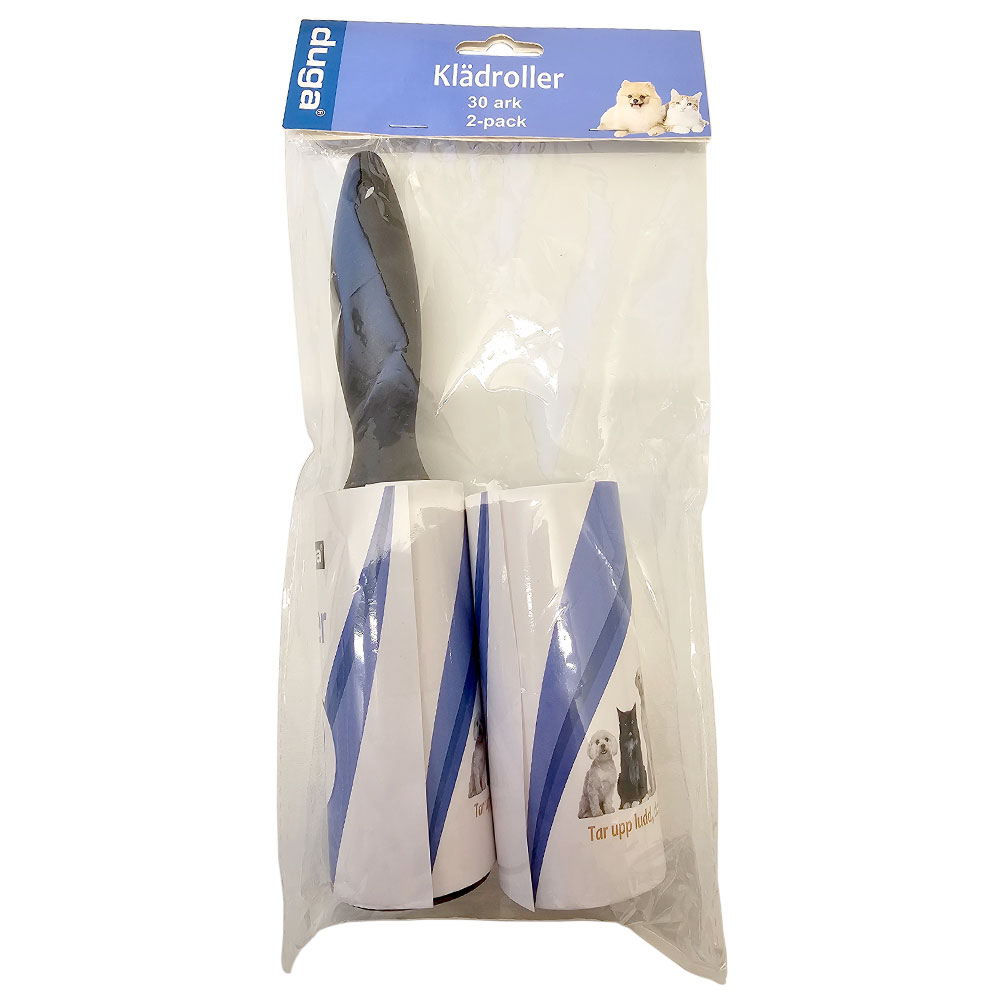 Klädroller med Plasthandtag 2-pack inkluderar 2 stycken roller med ett handag på 12 cm för att rengöra alla sort textil från ludd, damm, mjäll och djurhår. Vardera roller består av 30 ark.