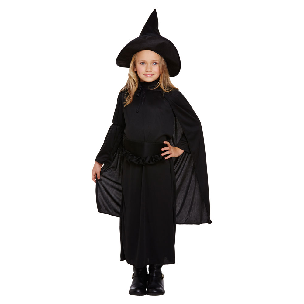 Klassisk Häxdräkt Barn omfattar en klassisk häxdräkt för barn som består av en lång, svart häxklänning och en spetsig häxhatt. Tillverkad av polyester.