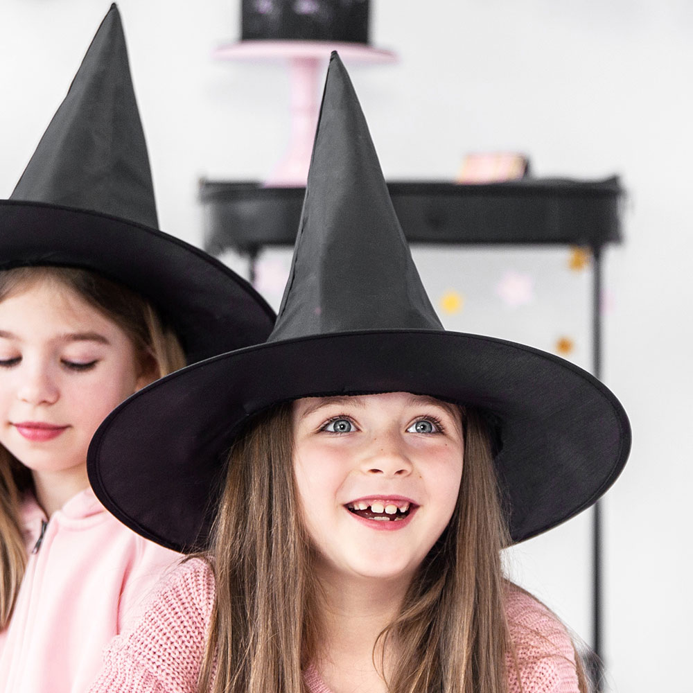 Dyk djupt ner i det magiska med vår klassiska svarta häxhatt för barn. En quintiessentiell accessoar för varje ungt trollkarl eller häxa, denna hatt kommer att komplettera din magiska ensemble perfekt. Denna halloween-hatt för barn passar lika bra till Halloween-partyt som till vardagliga lekar. Inspirera till fantasi och lekfullhet med denna häx-hatt. Förvandla din lilla till den mest charmerande häxan i stan. En oumbärlig del av varje barns kostymsamling.