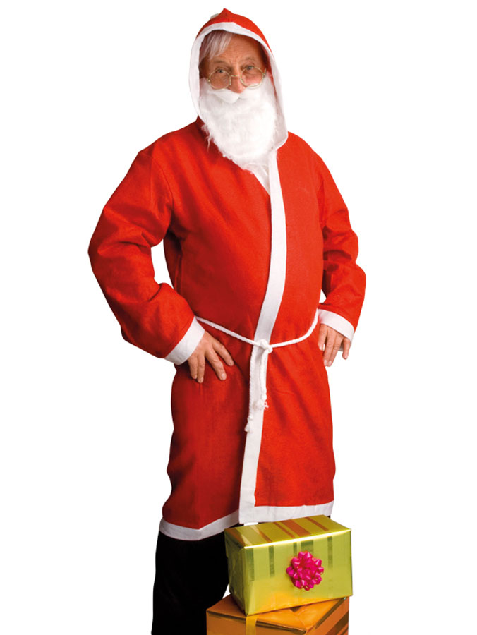 Klassisk Tomterock med Skägg omfattar en röd och vit tomtedräkt som består av en rock med huva, skärp och ett vitt fluffigt skägg.
