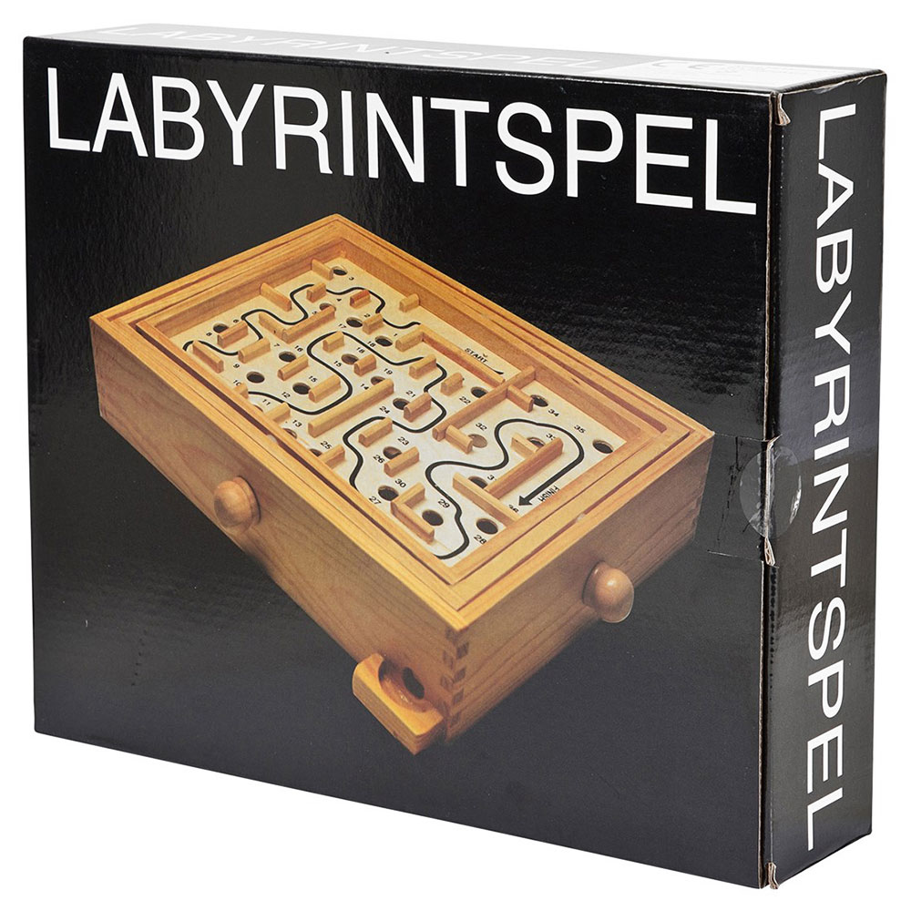 Klassiskt Labyrintspel omfattar ett klassiskt labyrintspel med 2 st metallkulor att spela med. Spelet går ut på att föra en av metallkulorna från start till mål utan att den trillar ner i något av hålen. Spelet är i trä och mäter ca 28 x 23 cm.