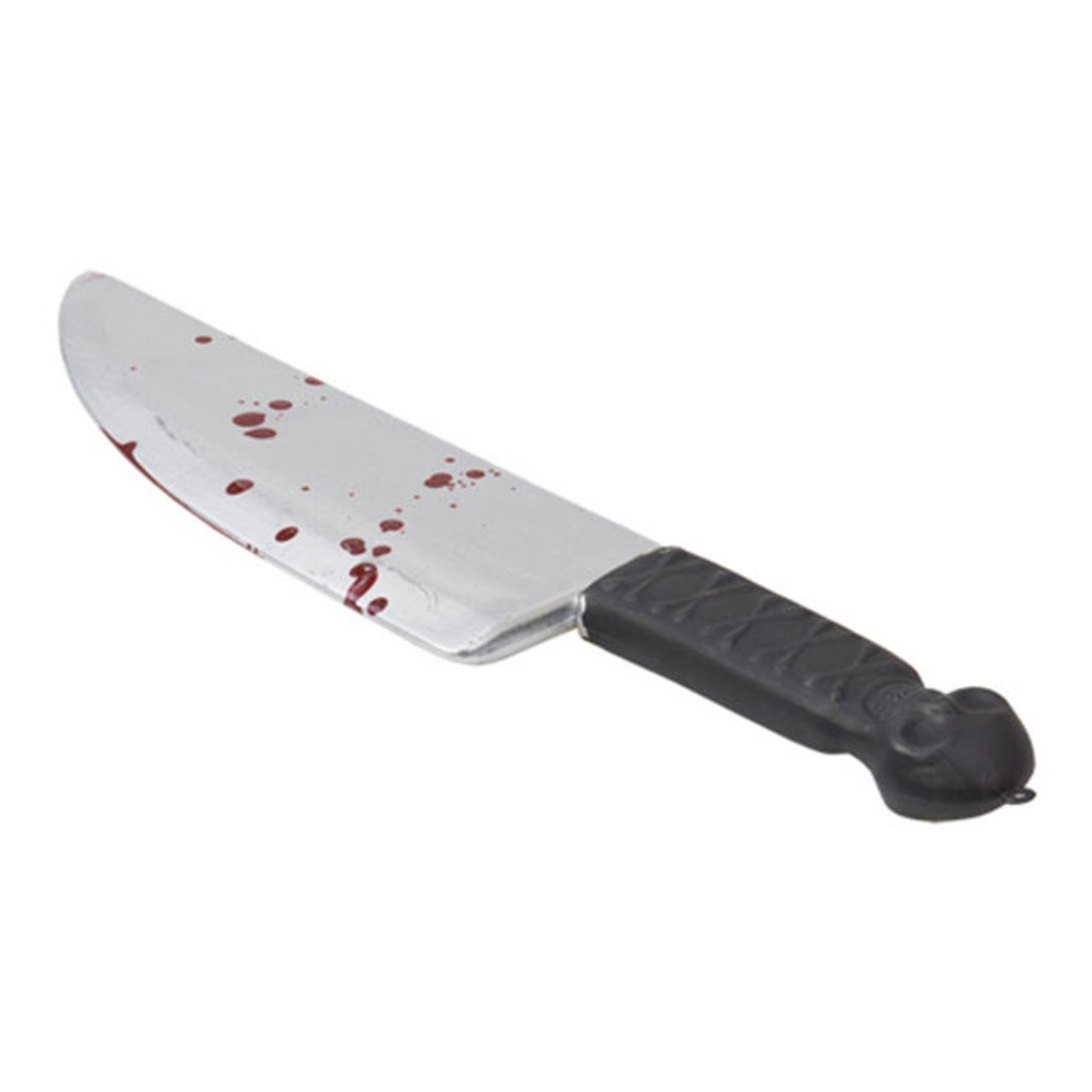 Kniv med Blod är av plast med svart skaft och silverblad med blod. Perfekt accessoar till skräckfesten.