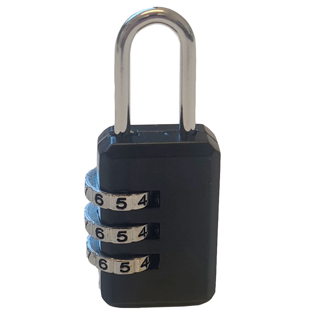 Kombinationshänglås är ett svart hänglås med ett kombinationslås med tre siffror.
