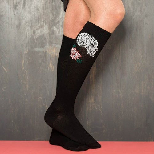 Kompressionsstrumpor med motiv – Sugar Skull.