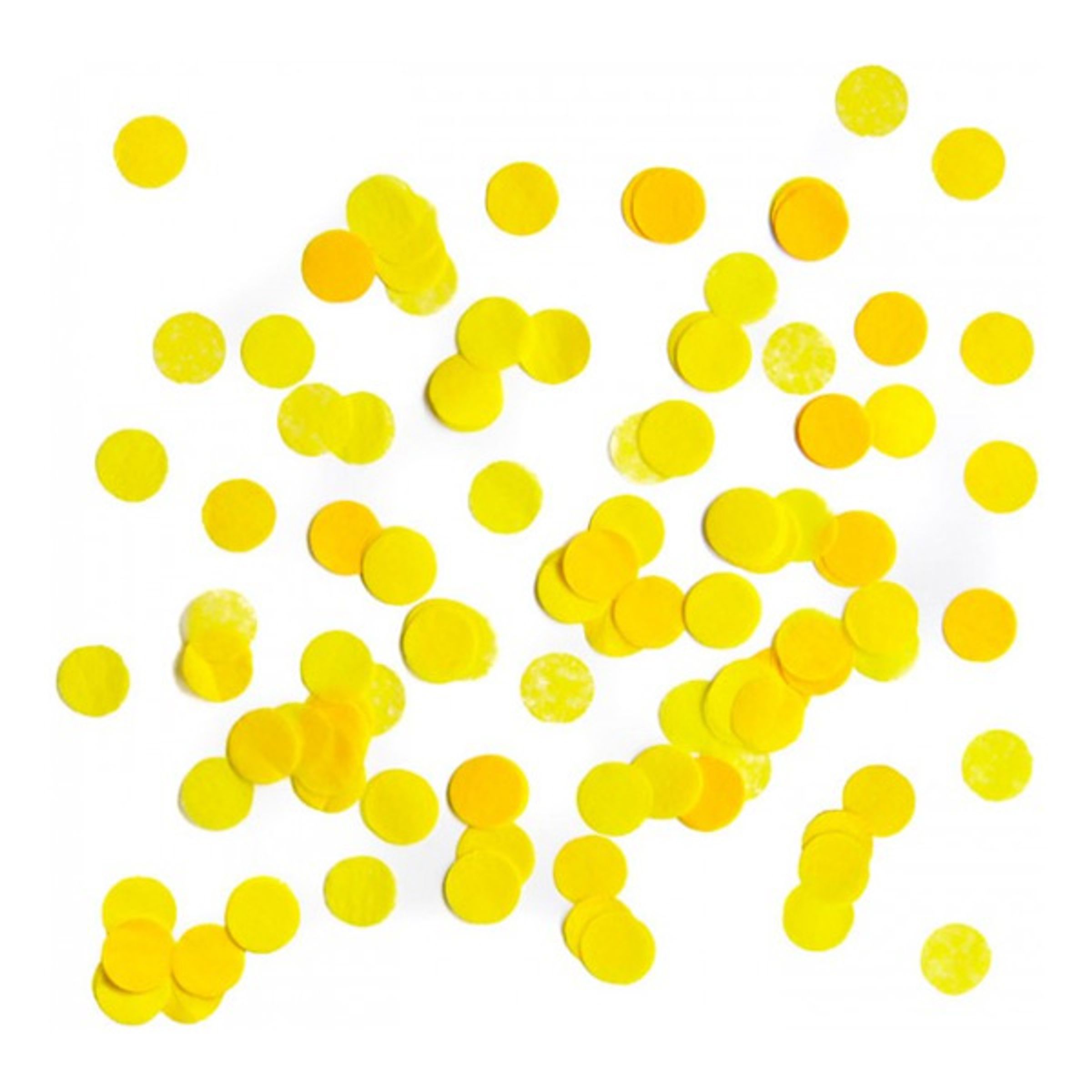Rund konfetti av papp i gul färg som är en given partyhöjare. Passar lite extra bra att dekorera bordsdukningen med till påskmiddagen!