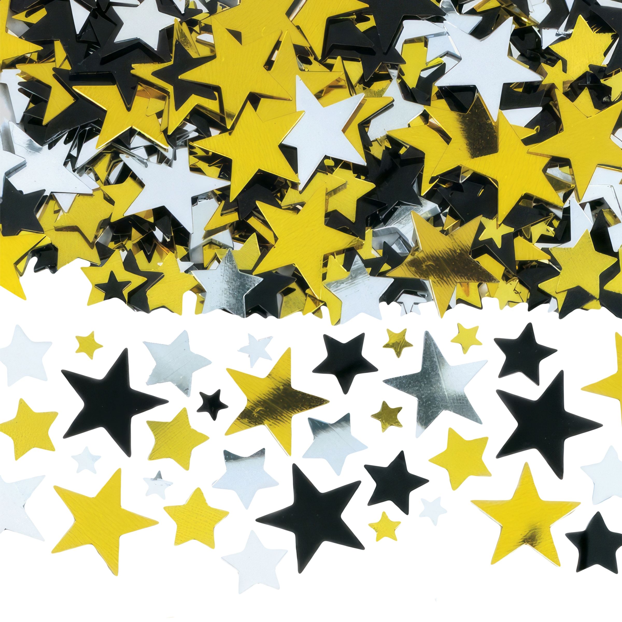 Konfettin kommer i form av små och lite större stjärnor i färgerna guld, silver och svart med en lätt metallicton. De skapar då en äkta gnistrande stämning för kvällens planerade filmfest. Det är bara att luta sig tillbaka i soffan och drömma sig bort till Beverly Hills, Hollywood, filmfestivaler och Golden Globe Award.