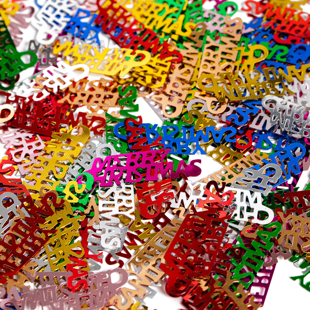 Skapa en riktigt festlig juldukning och pynta med denna flerfärgade julkonfetti! Stämningshöjande julkonfetti i form av texten "Merry Christmas" som utan tvekan blir en riktigt fin juldekoration till er dukning. Få en riktigt härlig julfest och skapa en festlig stämning runt bordet på ett ögonblick med denna fina merry christmas konfetti.