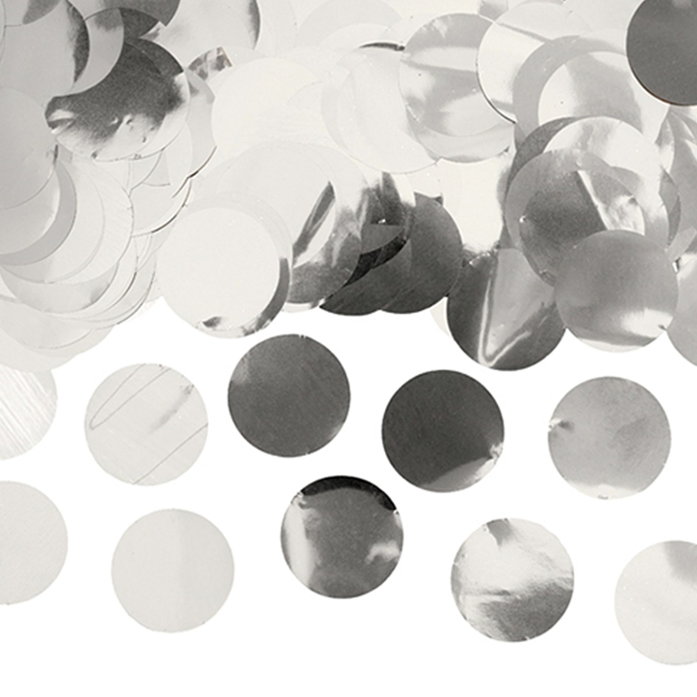 Konfetti Rund Silver Metallic innehåller 15 g rund silverfärgad konfetti. Konfettin är tillverkad i folie och är 2,5 cm i diametern.