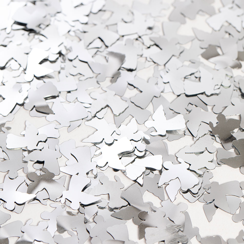 Konfetti Silvriga Änglar omfattar 14 gram silvrig konfetti som föreställer änglar.