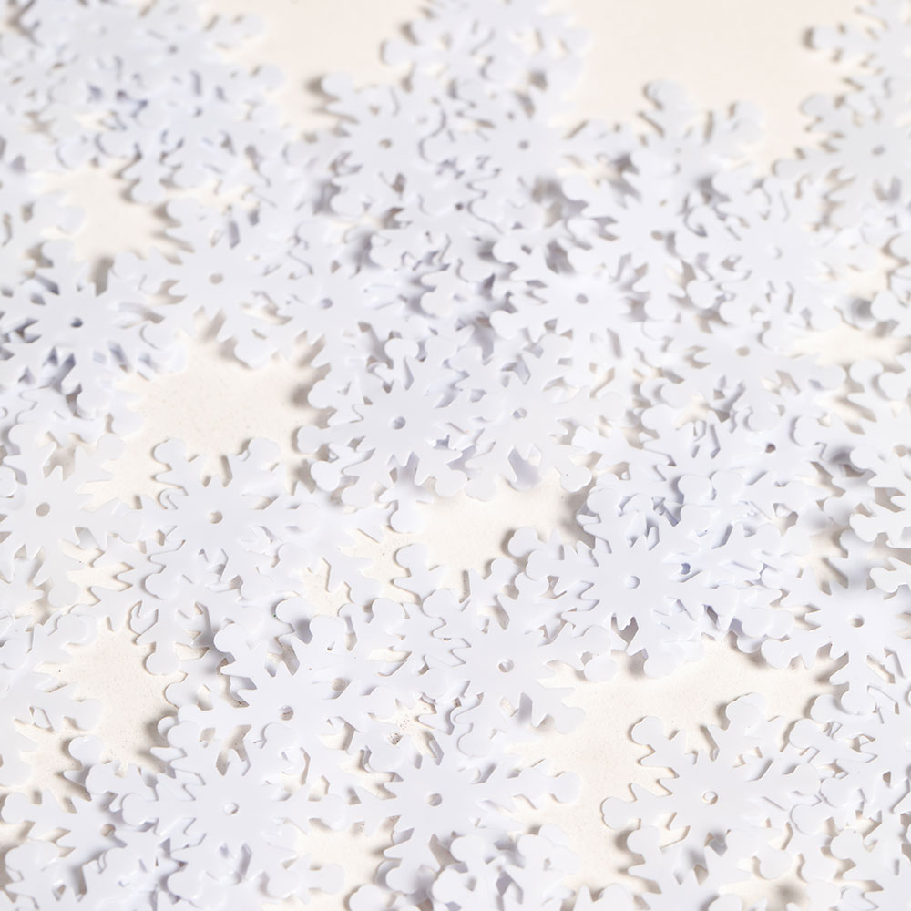 Njut av vacker snö till julfirandet oavsett om snön har börjar falla eller inte med hjälp av denna fina julkonfetti! Vit konfetti i form av snöflingor som blir en riktigt fin juldekoration till din jul-dukning. Sprid det över bordet eller kasta det upp i luften och låt det snöa ner över gästerna.