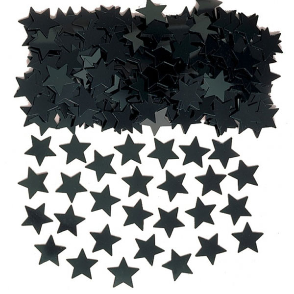 Konfetti Stjärnor Svart omfattar konfetti i form av svarta stjärnor som levereras i en förpackning om 14 gram.