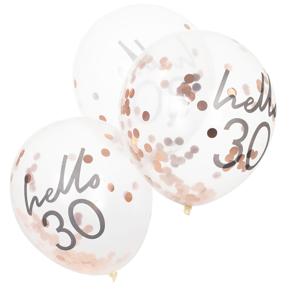 Konfettiballong Roséguld Hello 30 5-Pack