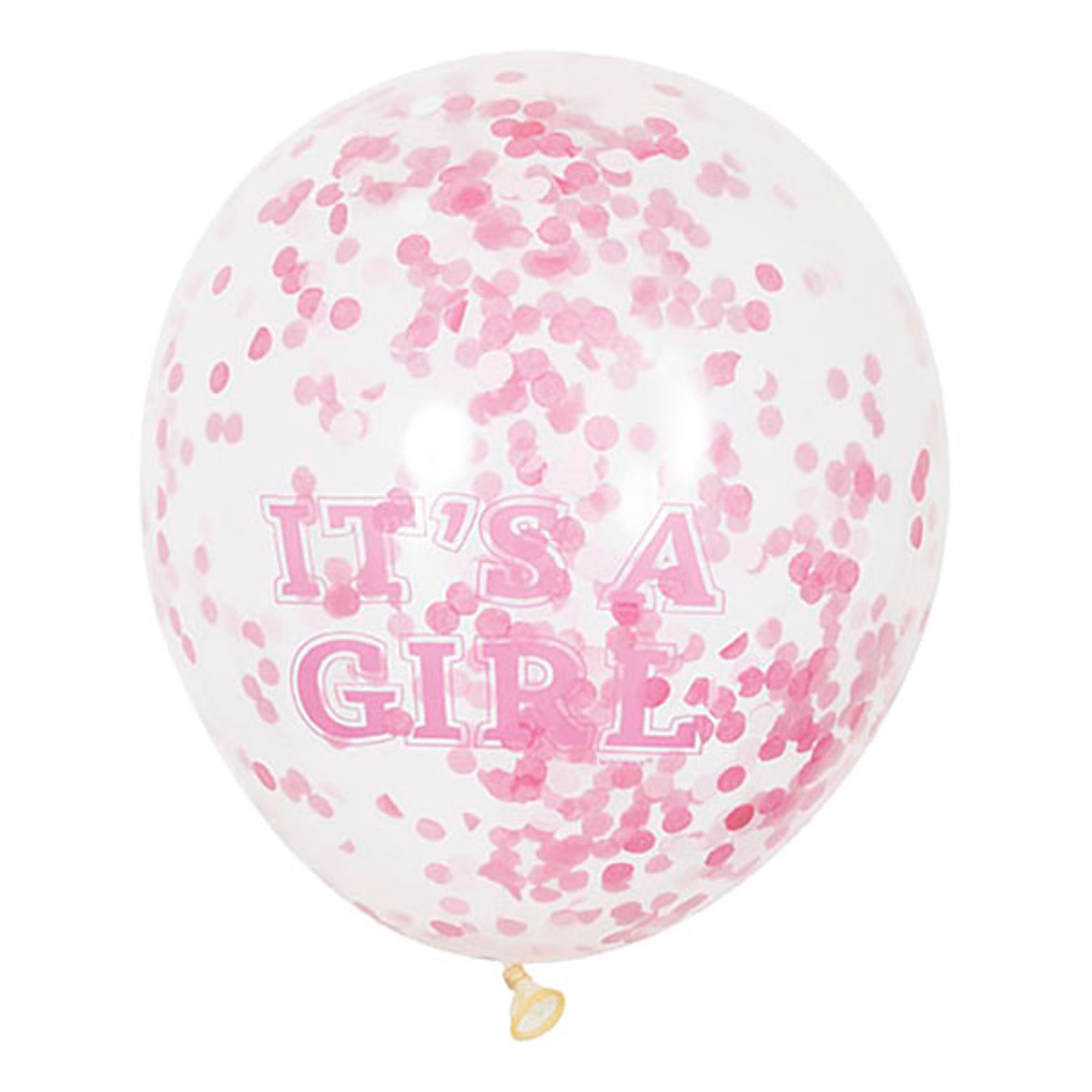 Konfettiballonger It's a Girl är ballonger fyllda med rosa konfetti och är genomskinliga för bästa effekt! På ballongerna står det "It´s a girl" i stora rosa bokstäver.
