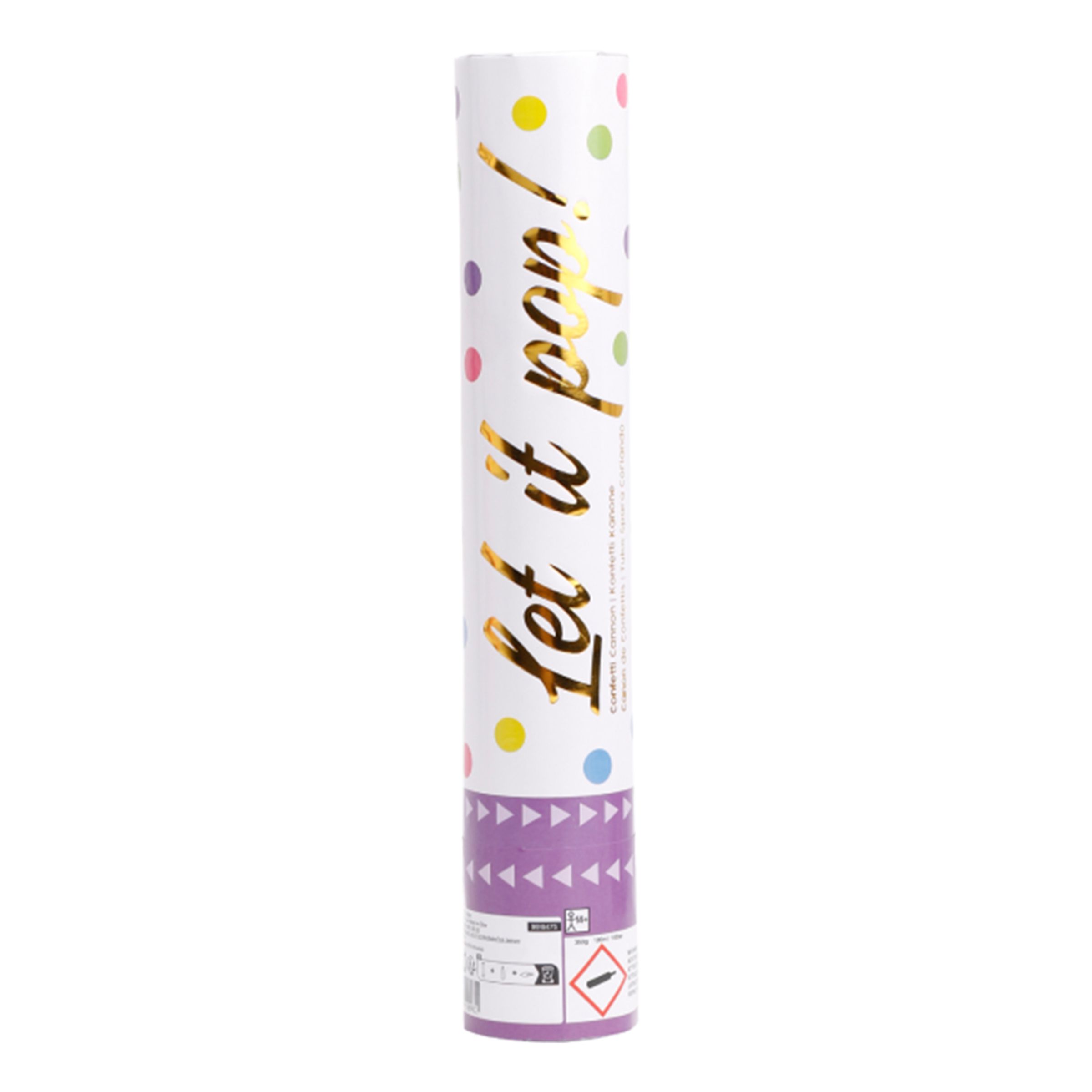 Konfettikanon Färgmix är proppad med multifärgad konfetti i form av runda pappersbitar. Perfekt för barnkalas och andra fartfyllda tillställningar – vrid botten och låt det regna!