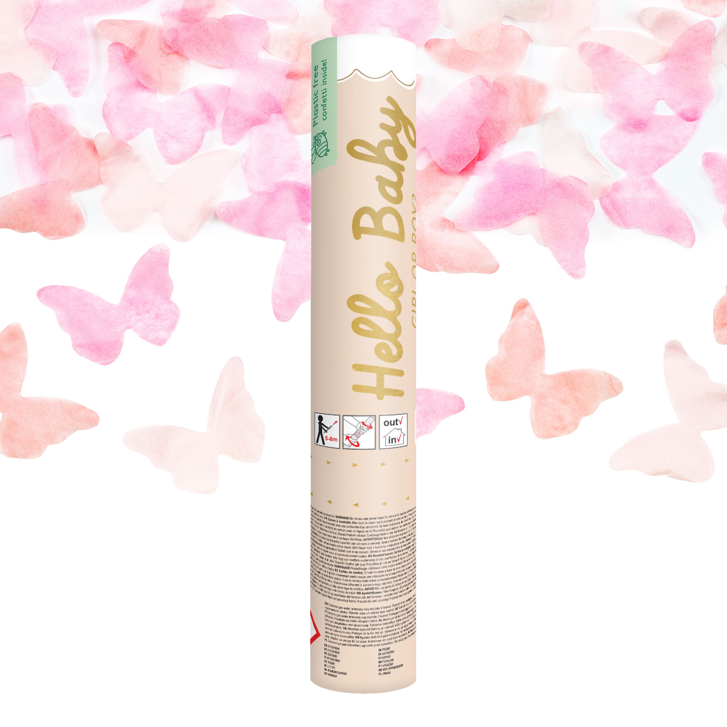 Konfettikanon Fjärilar Rosa består av tre nyanser av rosa pappersfjärilar som är utformade för att falla ner långsammare än vanligt som gör stunden extra romantisk och stämningsfull. Ett måste till bröllopet!