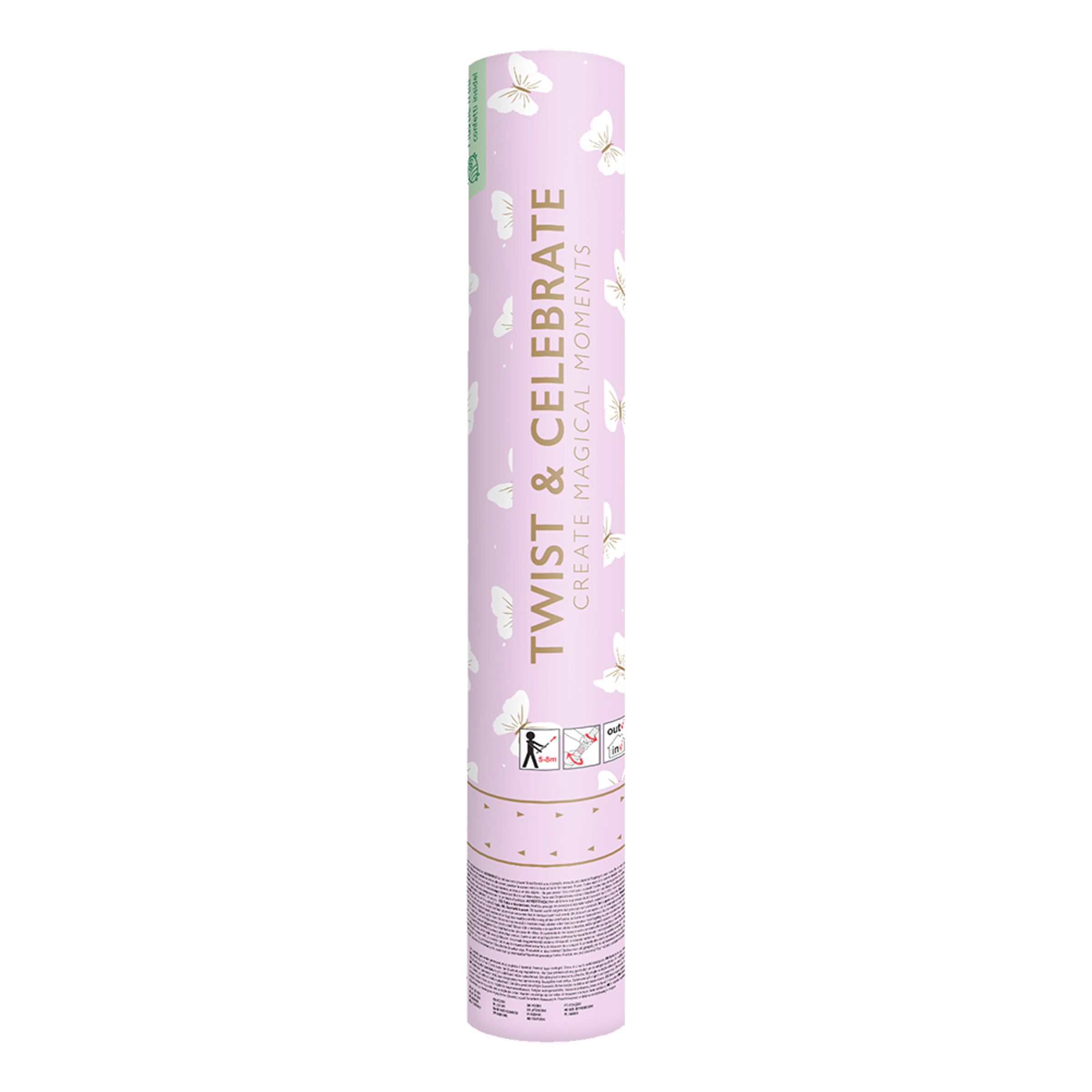 Konfettikanon Fjärilar Vit består av vita pappersfjärilar som är utformade för att falla ner långsammare än vanligt som gör stunden extra romantisk och stämningsfull. Ett måste till bröllopet!