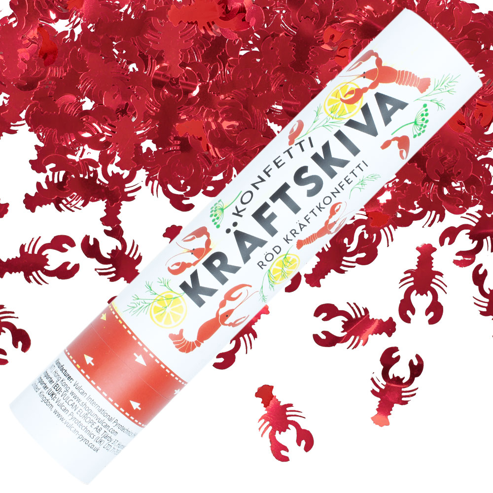 Förgyll kräftskivan med en miljövänlig konfettikanon som sprider papperskonfetti formade som röda kräftor. Vrider du på kanonens nedre del, får du en explosion av feststämning. Perfekt för en minnesvärd kväll.
