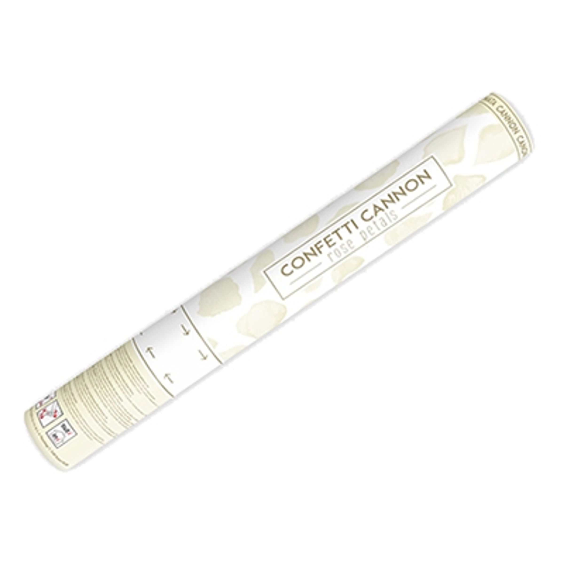 Konfettikanon Rosblad är en konfettikanon som kommer i tre olika storlekar och med olika mängd konfetti i. Du kan välja mellan 40 cm, 60 cm och 80 cm. Just större ert firande är desto större kanon passar till det.